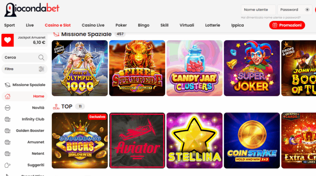 Se c’è una cosa che colpisce positivamente di Giocondabet è la straordinaria varietà di giochi disponibili. Il catalogo comprende: