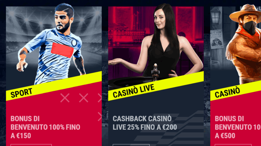 - Bonus di benvenuto fino a 150€ per l’Italia